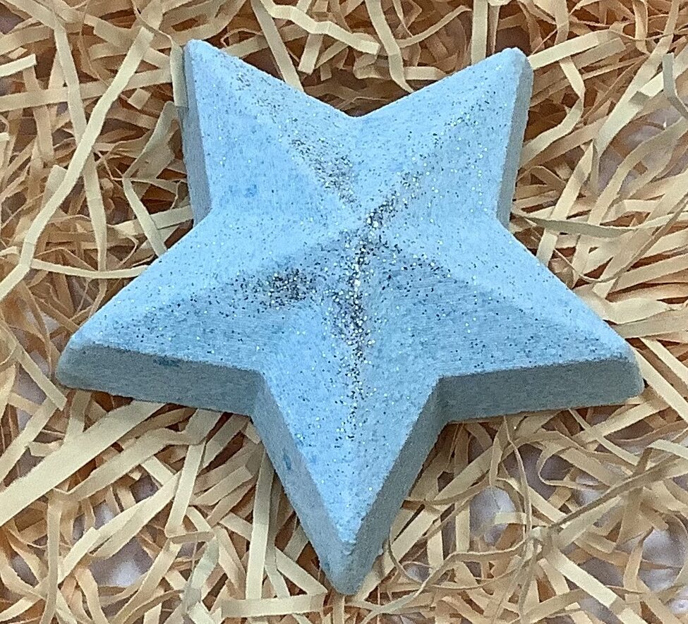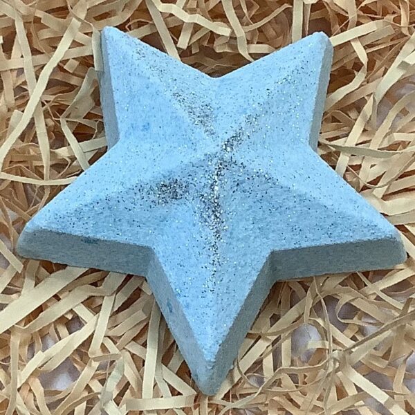One of trio of star shaped bath bombs – packed with tropical citrus fragrance, delicately coloured with water based colours of green and orange