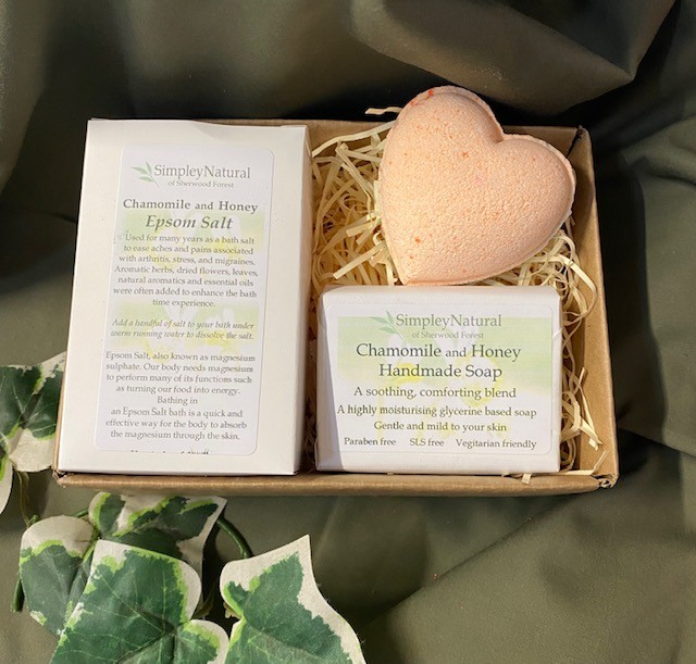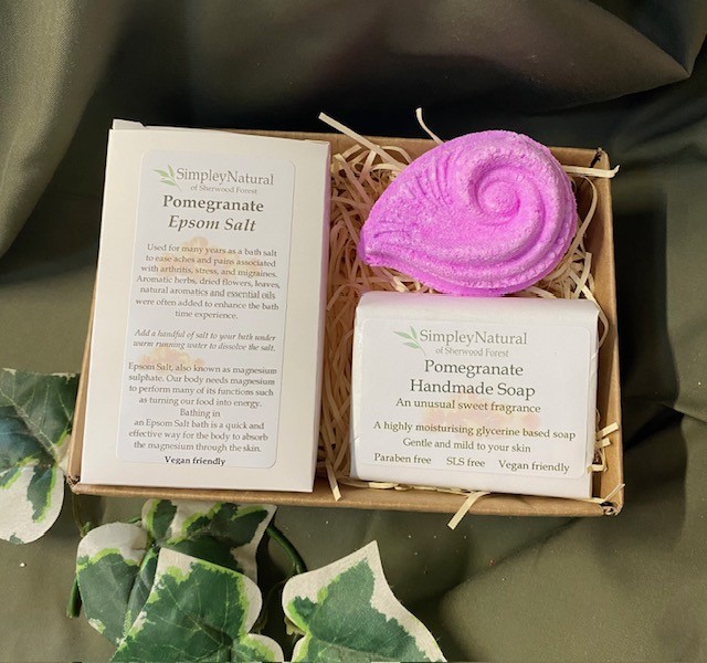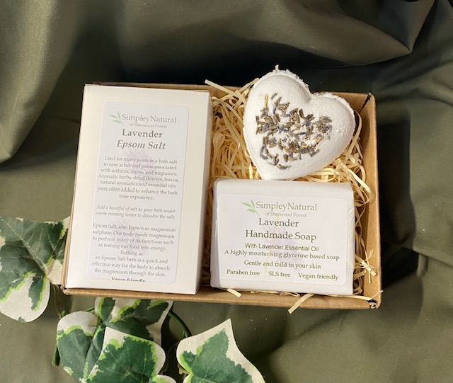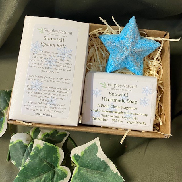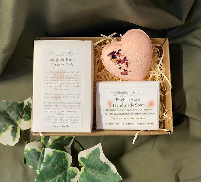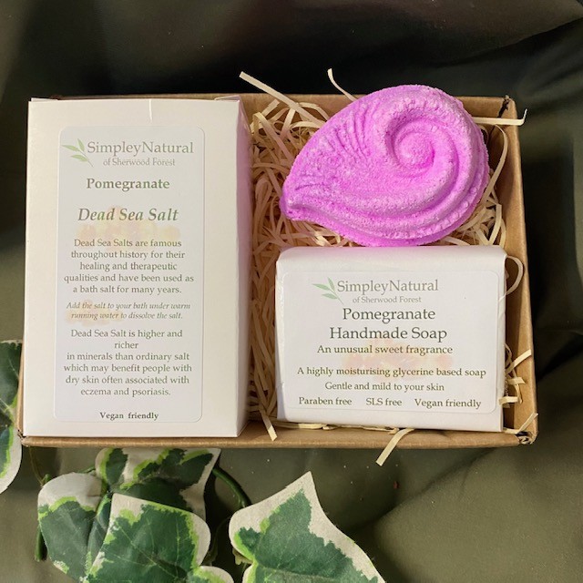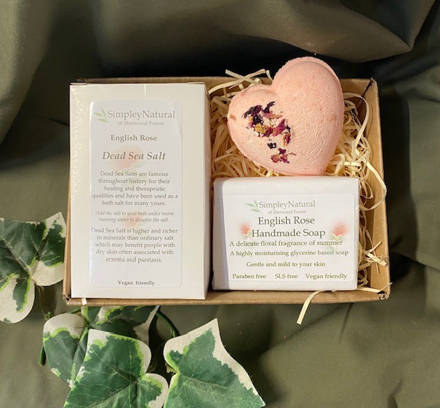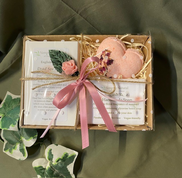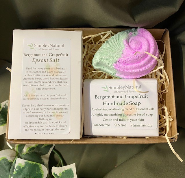 Each gift set contains a box of either Dead Sea Salt – so good for your skin or Epsom Salt for the perfect bath to ease aches and pains after exercise or a strenuous day, matching soap from our range of gentle SLS free soap, along with a matching bath bomb.